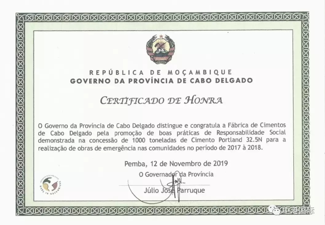 德爾加督水泥廠支持莫桑比克社會公益事業(yè)發(fā)展獲稱贊
