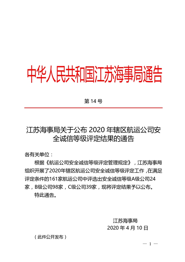 中港建設(shè)集團(tuán)有限公司榮獲“江蘇海事局安全誠信等級A級公司”榮譽(yù)稱號
