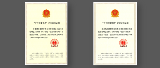 集團和下屬公司凱達路材雙雙榮獲國家級“重合同守信用”榮譽稱號