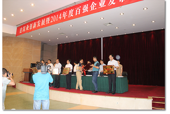 2015年6月11日,由江蘇省住房和城鄉(xiāng)建設(shè)廳、江蘇省統(tǒng)計(jì)局、江蘇省商務(wù)廳共同舉辦的全省建筑業(yè)創(chuàng)新發(fā)展暨2014年度百?gòu)?qiáng)企業(yè)發(fā)布會(huì)在南京隆重召開,會(huì)上,中港建設(shè)集團(tuán)有限公司被評(píng)為“二0一四年度江蘇省建筑業(yè)百?gòu)?qiáng)企業(yè)”,這是江蘇省公路交通設(shè)施類唯一一家獲此殊榮的企業(yè),集團(tuán)公司總裁秦高舉參加了大會(huì)并領(lǐng)取證書和獎(jiǎng)牌。